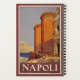 Napoli. Vintage travel poster showing Vesuvius and the bay of Naples from the terrace of a fortress, circa 1920.