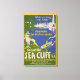 Vintage travel poster promoting Sea Cliff, Long Island for tourism, showing a boat at dock and the New York World's Fair in the background.