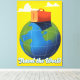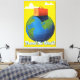 Travel the World beautiful retro style travel poster art print of a old suitcase sat on top of the earth.