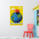 Travel the World beautiful retro style travel poster art print of a old suitcase sat on top of the earth.