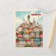 This travel postcard, in cartoonish digital illustration style, inspired by the Belgrade Serbia.