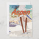 Aspen USA Vintage ski travel poster. Retro old Ski travel poster. Aspen Ski vacation poster