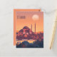 This travel postcard showcases a serene and warm illustration representing Istanbul skyline. It is a great and oriental postcard for travelers that plan to visit Istanbul or for those who travelled Istanbul and sending a postcard to their family or friends.
