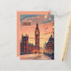 This travel postcard showcases a serene and warm illustration representing London skyline during winter. It is a great and romantic postcard for travelers that plan to visit London or for those who travelled London and sending a postcard to their family or friends.