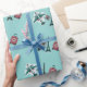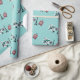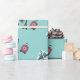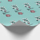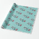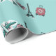 A green gift wrap with travel related elements: an aeroplane, a luggage, a photo camera, and the Eifel tower.