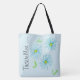 Designer large tote bag with a light sky blue background that can be changed to your favorited colour. Stylish modern floral tote with flower art design. Text can be personalised for you or a custom gift, or text is removable.