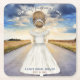 Travelling from Miss to Mrs bridal shower coasters with bride facing an open road. Personalise it with your event details.