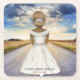 Travelling from Miss to Mrs bridal shower coasters with bride facing an open road. Personalise it with your event details.