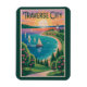 Traverse City retro vector travel design. Traverse City, Michigan, is a charming lakeside destination known as the Cherry Capital of the World, offering visitors vineyards, sandy Lake Michigan beaches, and scenic landscapes.