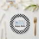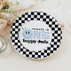 This one happy dude first birthday paper plate features a fun retro font and blue smiley face with a chequered background. This plate is perfect for your little man to celebrate his first big birthday! Pair with anything in the TRAVIS Collection for a cohesive look.