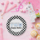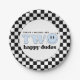 This one happy dude first birthday paper plate features a fun retro font and blue smiley face with a chequered background. This plate is perfect for your little man to celebrate his first big birthday! Pair with anything in the TRAVIS Collection for a cohesive look.