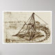 Treadmill Powered Digging Machine, Da Vinci Poster