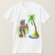 Men’s white Bella Canvas basic t-shirt with an image of a cartoon peg-legged pirate with his foot upon a treasure chest and a parrot on his arm. Beside him is a cartoon image of a deserted island with a palm tree and coconuts. See the entire Shipwreck Apparel collection in the PARTY FAVORS section.