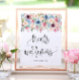 This welcome sign features a a beautiful watercolor drop floral design, calligraphy script heading and your custom text. Use the template form to add your personalization.