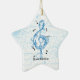 Blue scrollwork sol note key custom ornament, featuring the sol note key in blue scrollwork style and black notes.