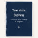 Simple musical business classic navy blue notebook, with a white treble clef symbol and customisable lettering. Great for staying organised in your music lessons or musician performing business.