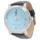 A simple, plain design featuring a cute tiny treble clef symbol on a light blue background. Perfect for everyone who loves minimalistic styles. Easily personalise this watch to your name or text.