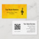 Simple music lessons business card, with a treble clef symbol on a gold background. With black customisable lettering, you customise with your own information. You also add your website to allow for connection with a QR code. Great for promoting your music lessons or performing business.