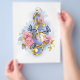 Gold, jewellery, treble clef decorated with delicate, artistically painted pink roses with fluttering blue butterflies.
