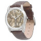 The watch looks really great! Very sharp and well done. The leather band is really nice, though for a man's watch I think it should be longer. Unfortunately, it isn't big enough for my husband's wrist but I will get a replacement because he is very excited to wear it!
