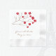 Artistic paper napkins for wedding desserts with an original design by Mango Moon Studio of a tree branch with cherry blossoms in red. Add the couple's names and wedding date.