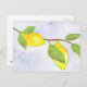 Tree Branch with Lemons and Leaves in Watercolor Postcard