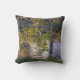 A tranquil scene from nature - In the original photograph by MaeFlowers on this 16” Throw Pillow, we see delicate, light coloured tree branches with their soft green leaves highlighted by the warm glow of afternoon sunlight. The branches hang over a canal with its rippled water reflecting the blue sky above.