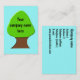 This fully customisable business card features a fun digital image of a tree with a green top and brown trunk on a sky blue background. You can type your company name on to the tree on the front, then type all your other important details on the back of the card. Click on the "customise it" button to fine tune the size, font and location of the text to meet your exact requirements. This business card was designed for arborists and gardeners but is suitable for other business types as well.