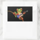 Tree Frog Playing Puerto Rico Flag Guitar Black Rectangular Sticker