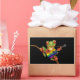 This cute design by artist Jeff Bartels features a small green tree frog holding a scratched and worn acoustic guitar. The rainbow gay pride flag is painted on to the old acoustic guitar. The adorable tree frog musician is sitting on a small branch and is looking forward with its large red eyes. The over sized head and small body along with the details on the skin and guitar create a beautiful combination of a cartoon and realistic look. This unique rainbow tree frog guitarist pattern is a great way to show off your support for gay and lesbian issues.