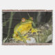 A quality printed throw has its advantages. This is a much finer weave throw than its loopier cousins, and though lighter, it is worth the investment for custom room accessorizing. The back is much prettier than the typical brown, and the fringe on the long sides very vivid, the selvage nicely done. Before photographing, I washed the throw in cold water, delicate, with a thicker woven throw the same size. On tumble dry low, this throw was dry in half the time as the other. This is a very practical quality if you use throws for furniture covers or to wrap up in frequently. The sleekness of the fabric makes it a great layer for accenting or protecting without the feeling of sitting on too much stuff. Perfect for napping or when you feel a light chill coming on. The color printing is beautiful and on this fabric, matched the design and color of my Photoshop image. This is an advantage for blending room fabrics and colors. The fringe on the short sides prints the colors from the design image and therefore varies from the side fringe. I streaked a white fractal line through the plaid pattern to give the illusion of weaving. This printed as crisp as an illusory thread, and put some white in the short side fringe, showing another advantage of print vs loomed- for artistic purposes, line lines, detail, and color integrity can be planned and preserved. My loomed throws have color limitations and more of a needlepoint texture. Print throws reproduce an exact image. The throw felt a little stiff straight out of the package, but this went away in the first delicate wash. Of course I searched the wash water for ink or bleeding and there was none.