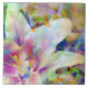Vibrant blended colours showing two green tree frogs with red eyes and orange toes with a large pink and white lily and a floral background. Almost watercolor-like in effect but it is digital photography and collage.