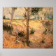 Trees in a Field on a Sunny Day by Vincent van Gogh is a vintage fine art post impressionism landscape nature painting. A meadow with a few trees and dry grass during the summer season.