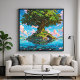 A giant tree growing in the middle of a body of water. A magnificent, sprawling tree rooted on a mystical floating island. Surrounded by crystal-clear water dotted with delicate water lilies, and set against a sky bursting with colour and soft clouds, this artwork is a celebration of life, nature, and the extraordinary. A truly enchanting piece that brings a touch of nature to any room. A grand, ancient tree stands as the centerpiece of this small island, complete with a natural archway. The surrounding water shimmers with reflections and is adorned with beautiful blossoms, all under a sky painted with the vibrant hues. This artwork can be customised, printed, and downloaded.
