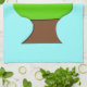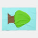 This awesome kitchen towel features a fun digital image of a tree with a green top and brown trunk on a sky blue background.