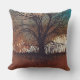 Watercolor Inked Tree Landscape I Design shown on throw pillow. Large inked tree with watercolor background in blues and browns. This art is also available on a variety of products. Design by Jenn's Emporium.