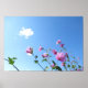 A photograph of a tree mallow plant (Lavatera arborea) in bloom that captures the blue skies and sunlight of summer.