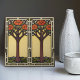 Tree of Life Abstract Yellow Orange Mid-Century Tile