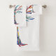 This unique bath towel set is decorated with a Tree of Life mosaic which was made from tiny pieces of brightly coloured glass.