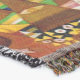 A quality printed throw has its advantages. This is a much finer weave throw than its loopier cousins, and though lighter, it is worth the investment for custom room accessorizing. The back is much prettier than the typical brown, and the fringe on the long sides very vivid, the selvage nicely done. Before photographing, I washed the throw in cold water, delicate, with a thicker woven throw the same size. On tumble dry low, this throw was dry in half the time as the other. This is a very practical quality if you use throws for furniture covers or to wrap up in frequently. The sleekness of the fabric makes it a great layer for accenting or protecting without the feeling of sitting on too much stuff. Perfect for napping or when you feel a light chill coming on. The color printing is beautiful and on this fabric, matched the design and color of my Photoshop image. This is an advantage for blending room fabrics and colors. The fringe on the short sides prints the colors from the design image and therefore varies from the side fringe. I streaked a white fractal line through the plaid pattern to give the illusion of weaving. This printed as crisp as an illusory thread, and put some white in the short side fringe, showing another advantage of print vs loomed- for artistic purposes, line lines, detail, and color integrity can be planned and preserved. My loomed throws have color limitations and more of a needlepoint texture. Print throws reproduce an exact image. The throw felt a little stiff straight out of the package, but this went away in the first delicate wash. Of course I searched the wash water for ink or bleeding and there was none.