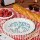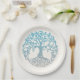 Set of eight 9” paper plates with an image of an aqua and grey “Tree of Life” on ivory. Also available in royal blue. The Tree of Life symbol represents our personal development, uniqueness and individual beauty. Just as the branches of a tree strengthen and grow upwards to the sky, we too grow stronger, striving for greater knowledge, wisdom and new experiences as we move through life. See the entire This & That Plate collection in the HOME section.