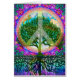 Tree of Life Peace is a very brightly coloured tree of life in psycadelic colours featuring a peace sign in front of earth and an intricate roots system. It was created by Amelia Carrie who grew up during the outskirts of San Francsico during the 60's and 70's and was thus influenced by hippie artwork for this piece.
