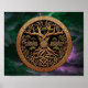 Gorgeous Tree of Life with great details on the bark and trees. Green and purple galaxy sky background.