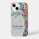 This decorative phone case features a rainbow coloured mosaic tree of life on a pale grey background.