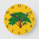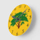The clock did not take as long to arrive as I thought it might and was extremely well packaged. I didn't do the measurements so I didn't realize it is a little smaller than the average clock but that does not matter (just make sure you check if that's important to you).It is really nifty! It seems very solid and well made not flimsy at all. It has been going well and has kept good time in its few weeks on my wall. Nice product. Gets noticed too! Nicer in real life than the picture but true to the picture