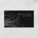 Elegant and minimalist business card template with black and white silhouettes of trees and bird.