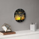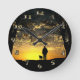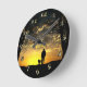 Tree Silhouette of Man and Dog at Sunset Round Clock