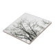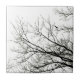 Decorative ceramic tile with black and white art photography featuring bare trees silhouettes and flying bird.