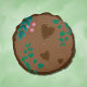 A cute round pillow for the nursery room with a woodland theme . It features a tree slice with a few leaves , some pink berries and a little bear on the front side . You can also add the baby's initial and first name . On the back your have brown faux stitched hearts instead of the bear .