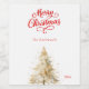 Tree snow white red script Christmas Wine Label